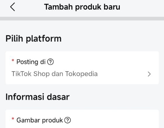 Tampilan halaman tambah produk di Aplikasi TikTok Seller Center