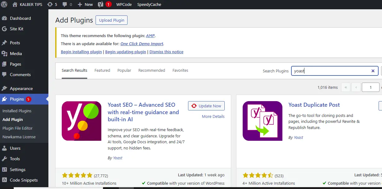 Gunakan kolom pencarian, misalnya: Elementor, Yoast SEO, Contact Form 7.